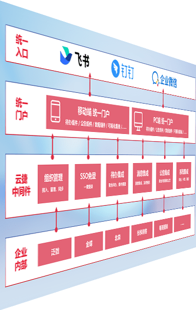 对协作平台提供支持服务,,,支持企业应用与协作平台对接,,,,包含组织同步、、消息集成、、、、待办集成等。。支持目前主流的协作平台:钉钉、、、、企微和飞书。。。。